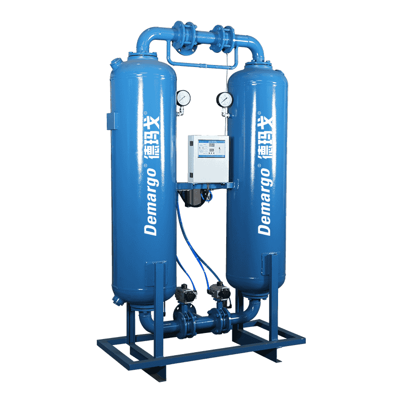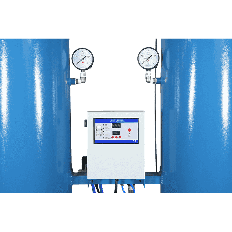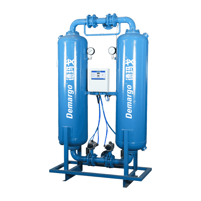 Huomaton regeneratiivinen adsorptiokui Koska ilman kyky pitää vesihöyryä on käänteisesti verrannollinen paineeseen, osa ilman kuivumisen jälkeen (kutsutaan regeneraatiokaasua) puristetaan ja laajennetaan ilmakehän paineeseen. Tämä paineenmuutos tekee laajennetusta ilmakuivaimesta, ja sitten sen annetaan virtata kuivausainekerroksen läpi, jota ei ole kytketty ilmavirtaan (ts. Kuivaustorni, joka on absorboinut tarpeeksi vesihöyryä). Kuiva regeneraatiokaasu imee kosteutta kuivumisaineella ja vie sen pois kuivausrummusta ilmankuivauksen tarkoituksen saavuttamiseksi.
